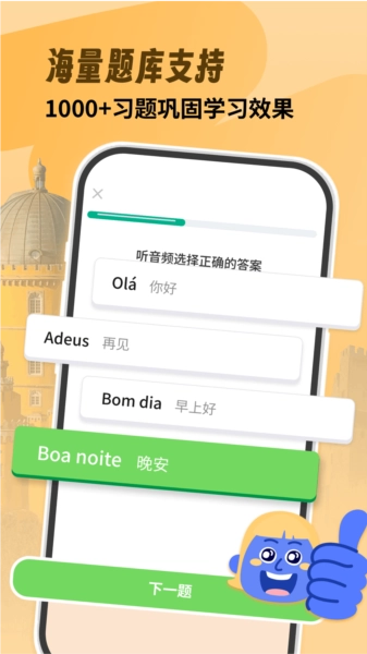 葡萄牙语自学习是一款专注于打造沉浸式葡萄牙语学习体验的应用,它既能满足留学生、职场人士和旅游爱好者的日常学习需求,又凭借丰富的学习资源与创新的教学方法,让语言学习过程变得轻松又有趣。不管你是刚入门的新手,还是想进一步提升现有水平的学习者,这款应用都会成为你葡萄牙语学习之路上的理想伙伴。