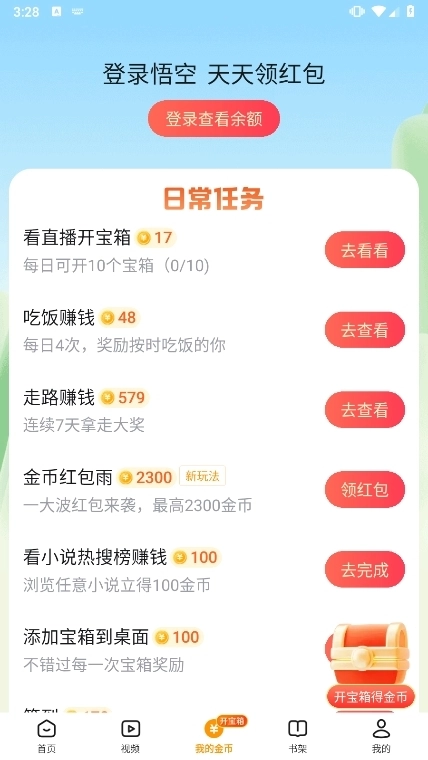 悟空浏览器采用“阅读+金币”的模式,用户可以通过阅读达到指定时长、完成金币任务等途径来获取金币。