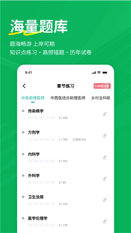 章节练习:依据考试大纲划分章节,提供分节知识点训练,支持按科目、章节灵活组合练习。