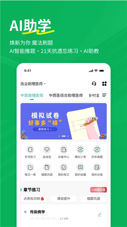 历年考试真题:汇总近五年执业助理医师资格考试的真题,清晰标注每道题对应的考试年份及考点分布情况,助力考生更好地掌握命题规律与出题方向。