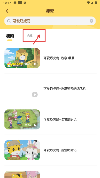 4、进入视频合集列表页面后,点击“可爱巧虎岛”的合集条目,即可查看该系列的视频合集内容。