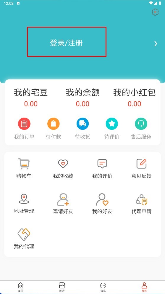 2、进入“我的”页面后,点击【登录/注册】按钮,即可进入账号登录界面。