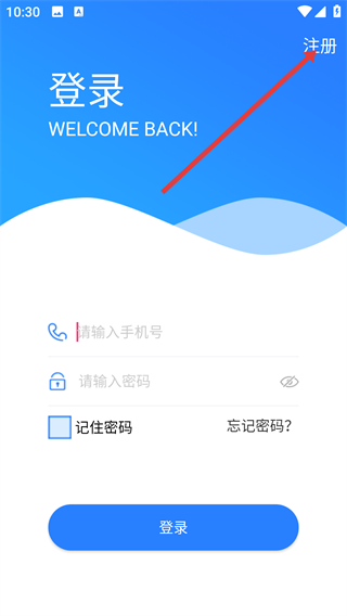 2、来到登录页面后,点击右上角的【注册】按钮,即可进入账号注册页面。