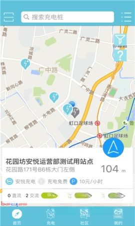 4、可实时定位充电桩的位置与状态,并能精准导航至附近的充电桩。