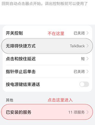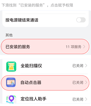 2、向下滑动屏幕,在列表里找到“已安装的服务”选项,点击进入该页面来授予对应的权限。