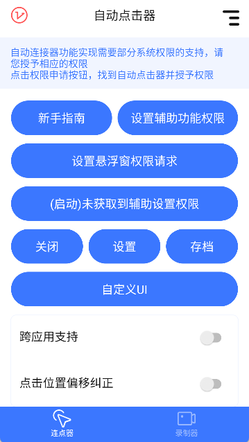 1、启动自动连点神器,点击主界面上的“设置辅助功能权限”选项;