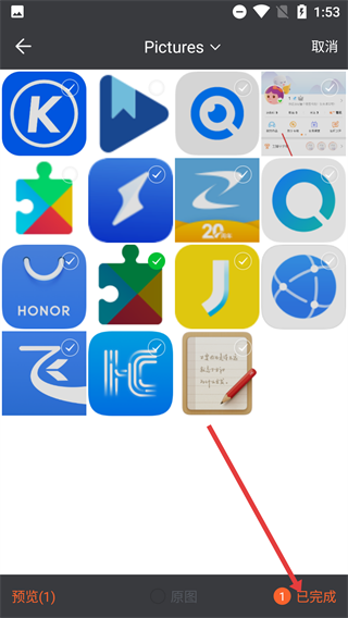 4、在相册界面选中想要添加的目标图片后,点击“已完成”按钮,即可完成照片添加操作,这样就能生成适配脸型的发型短片了。