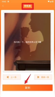 3、在彩虹屁界面中,点击复制按钮就能快速复制生成好的文案,无论是分享出去还是直接发布都很方便,还能增添趣味互动的效果。