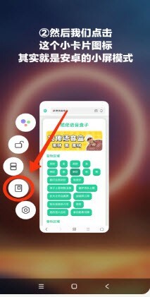 3、随后左侧会显示出相关功能,点击那个小卡片样式的图标,这对应的就是安卓系统的小屏模式。