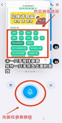5、操作时只需一只手按住录音键,另一只手点击音效就能完成发送。