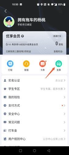 3、接下来就能看到自己的个人情况,然后点击右上角的“发票”按钮就可以打印出来啦。