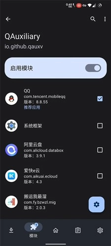 3、在模块列表里长按任意模块并选择支持,此外还有框架及管理器支持相关的问题解答。