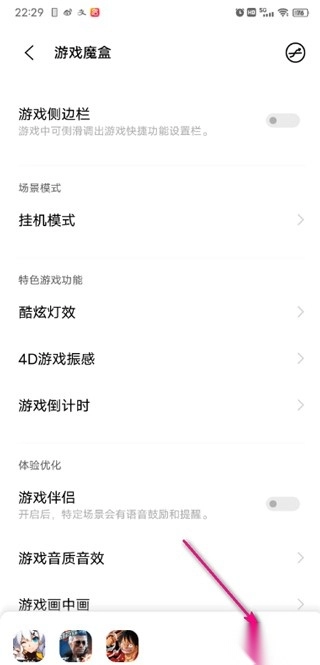 2、在设置中找到游戏魔盒点开;