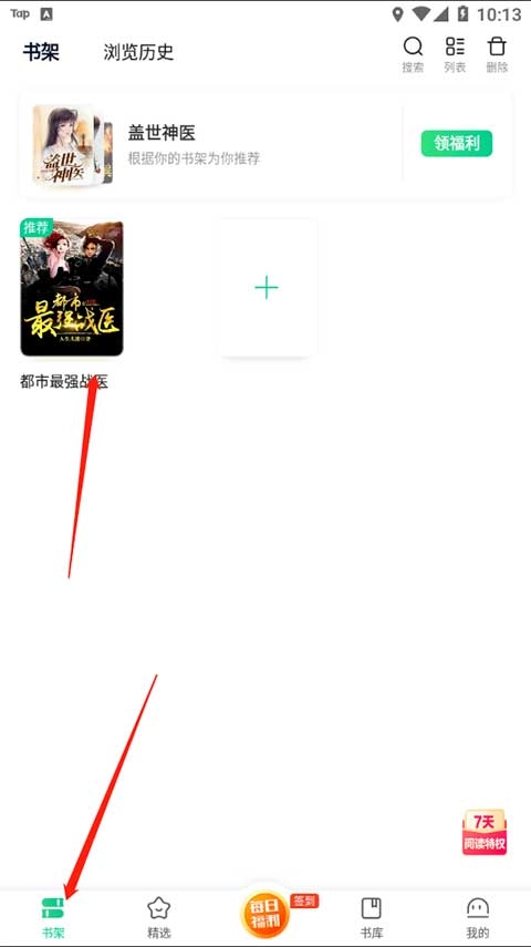 2、我们在下方点击“书架”,然后在这里找到我们需要进行阅读的小说。