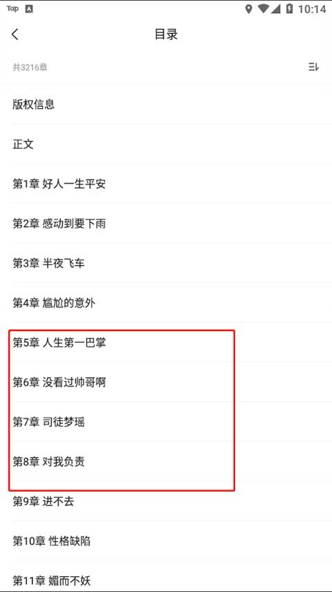 4、接着在这个位置我们就能看到小说的所有章节了,其中颜色稍深的是已经缓存完成的章节,颜色稍浅的则是尚未缓存的章节部分。
