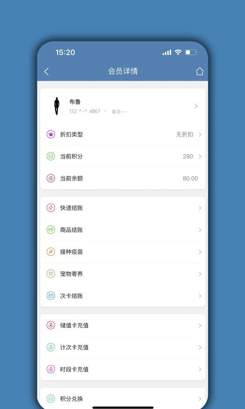 宠物店管家是一款专注于宠物店系统管理的软件,整合了会员管理、消费结账、消息通知、宠物档案、客户营销、库存管理、账务管理、员工绩效等多项功能,是帮助宠物店提升管理效率、降低各类成本的全功能信息化管理系统。此外,它还提供it猫扑itmop客户微信端入口,支持客户自助查询消费、充值等流水记录,并且能接收公众号通知,助力店铺与客户建立更紧密的连接,进一步提升店铺的服务能力。