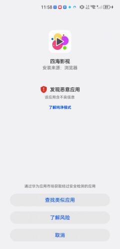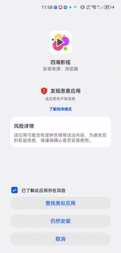 2、系统检测到恶意应用,不排除是误判的可能,建议点击“了解风险”。