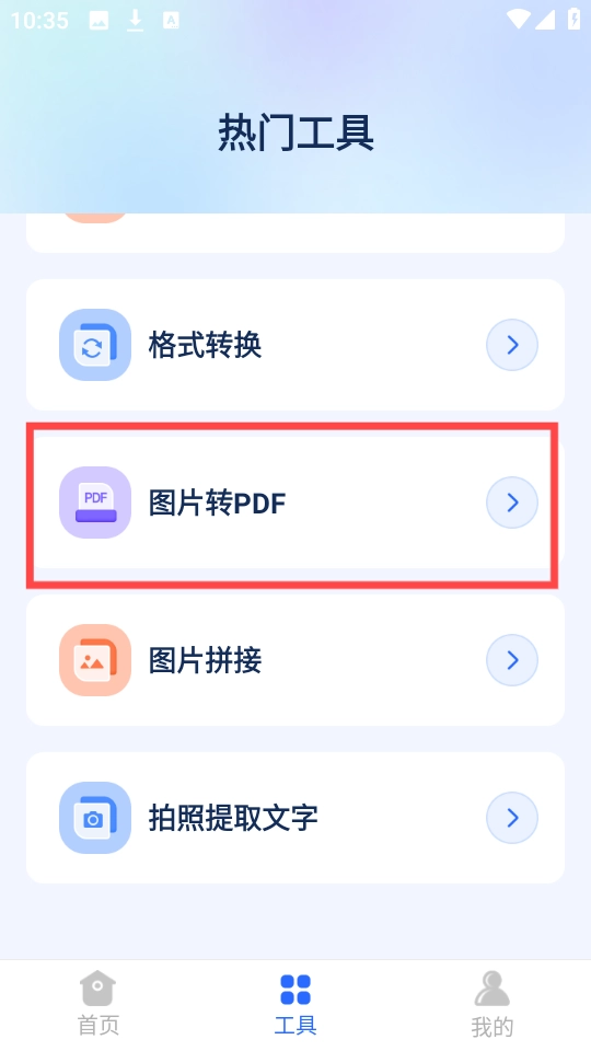 1、启动软件后,找到“工具”选项,点击其中的“图片转pdf”功能。