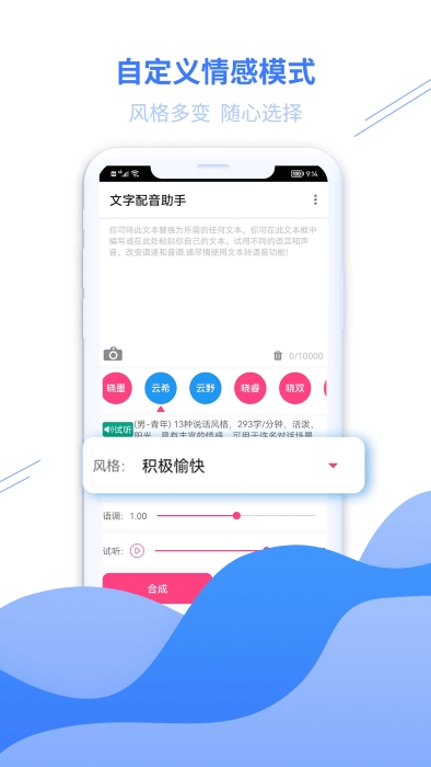 3、支持自定义语调和语速,是您制作短视频的得力助手。