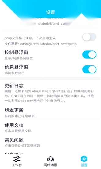启用悬浮窗功能:开启控制悬浮窗,可在测试过程中实时调整网络参数;同时开启信息悬浮窗,以获取详细的测试数据。