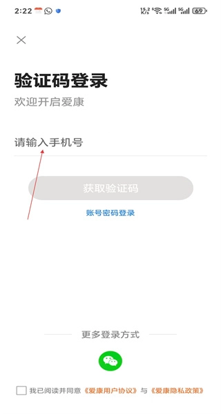在验证码登录页面,需要填写手机号码,同时设有获取验证码、账号密码登录以及更多登录方式的选项,填写好手机号码后就能继续进行登录流程。
