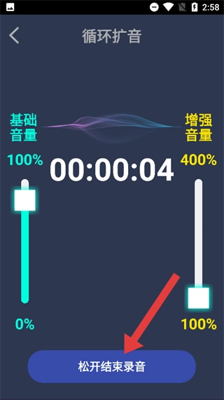 在循环扩音界面,按住标有【按住说话即可开始循环播放】的按钮,就能录制声音并启动循环播放功能。