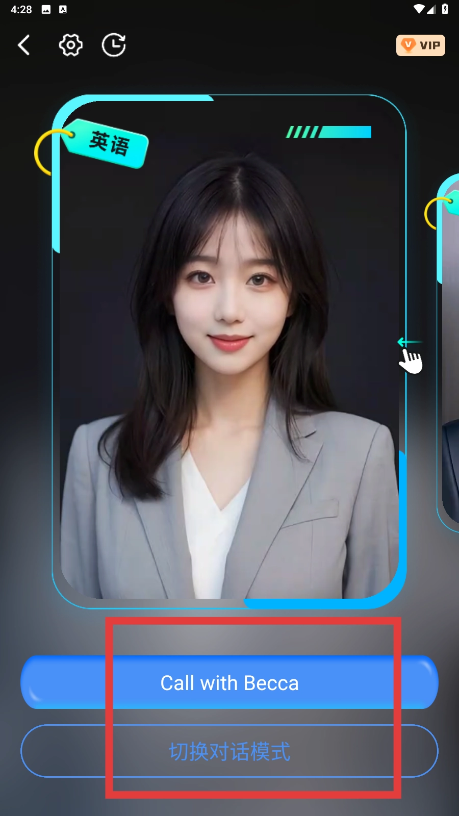 3、在同声传译界面,既可以点击【Call-with-Becca-功能按钮】,也能够切换对话模式。