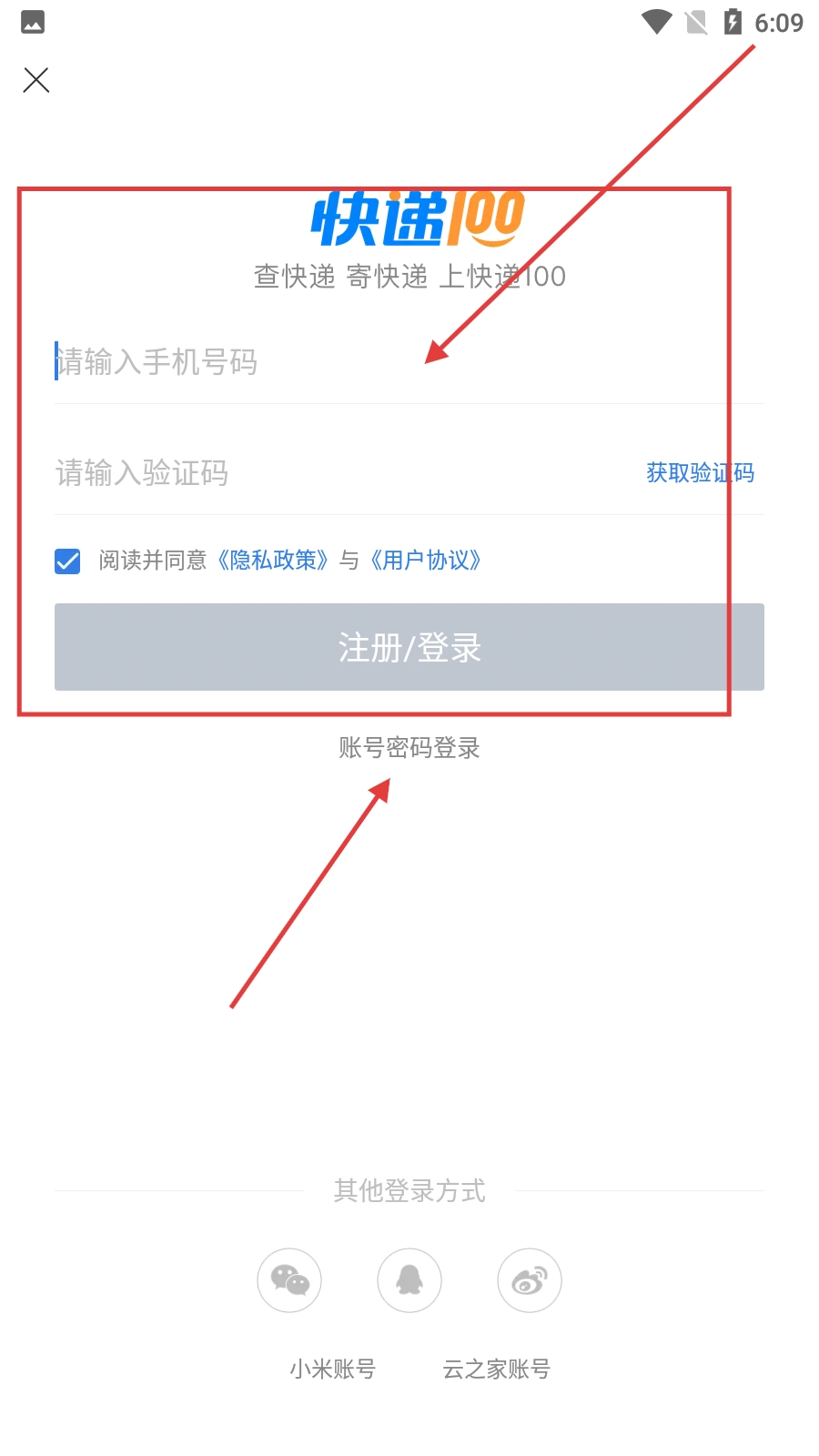 4、在账号密码登录界面,输入邮箱或号码以及密码,勾选相关协议后点击【登录】按钮,就能完成登录操作。