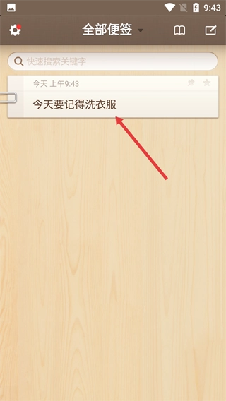 4、保存操作完成后回到所有便签的界面,就能看到刚创建的便签条目,至此便签创建的流程就全部完成了。