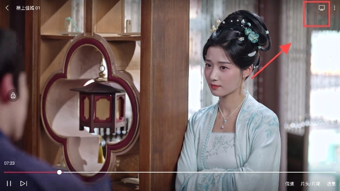 先搜索查找你想看的影片,找到后在影片播放界面里点击投屏图标