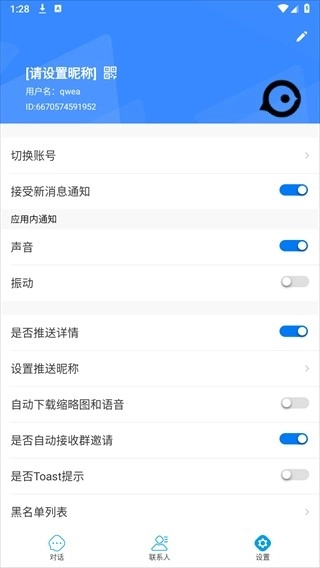 安装蓝莺IM,并且打开软件。