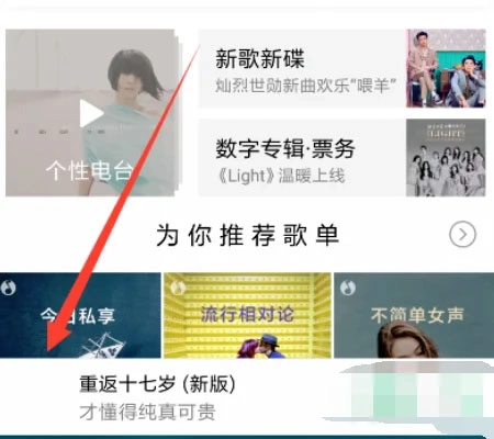 1、用户打开并登录软件,进入主页后,可点击软件每日推荐的歌曲进行播放。