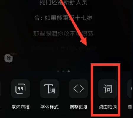4、在词的选项里就有一个桌面歌词功能,我们点击一下就能打开歌词,旁边还有歌词的其他设置选项哦。