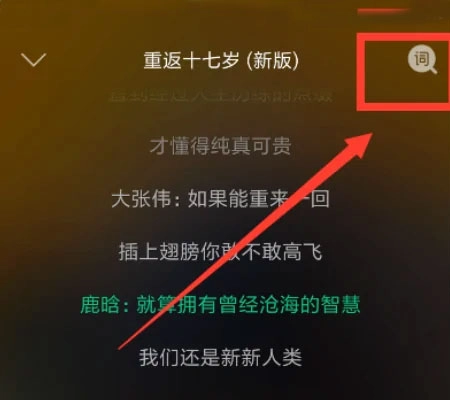 3、进入歌词界面后,在界面右上角能看到一个“词”字的功能选项,我们点击它将其打开。