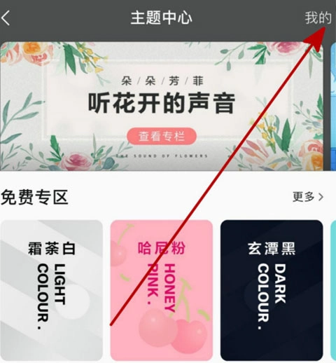 2、登录成功后在“我的”页面中点击“主题中心”。