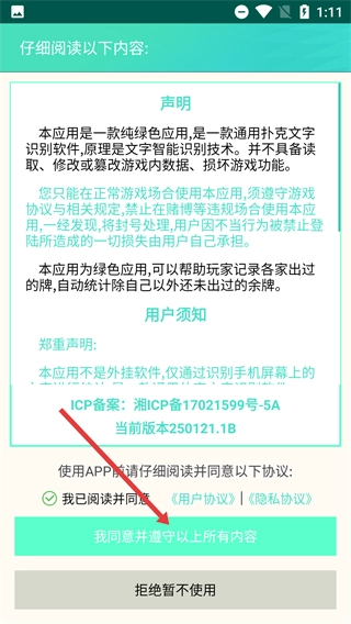 1、仔细阅读声明与用户须知,勾选【我已阅读并同意】选项,随后点击【我同意并遵守以上所有内容】按钮,即可进入登录界面。