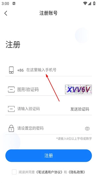 4、在账号注册页面,输入号码,填写图形验证码与短信验证码,设置好密码后即可完成注册,开启学习之旅。