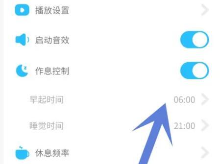 4.休息控制开关打开后,点击下方的早起时间