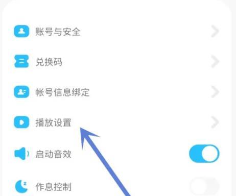 3.在设置页面,找到播放设置,点击打开