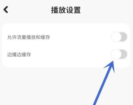 4.在播放设置里,找到“边播边缓存”选项,将其开关打开,就能成功启用边播边缓存功能。