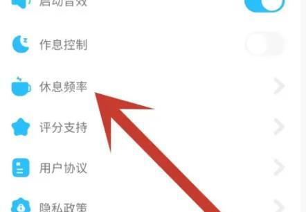 2.在设置中,找到休息频率,点击打开