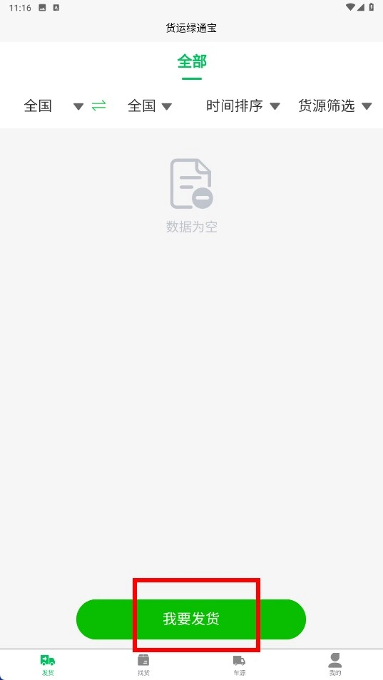 1、进入“发货”页面后,点击【我要发货】按钮,即可进入货运需求发布界面。