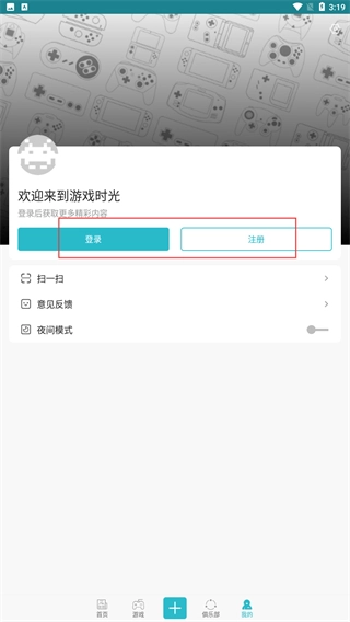 2、在欢迎页,点击【登录】或【注册】按钮,即可进入对应的账号操作页面。