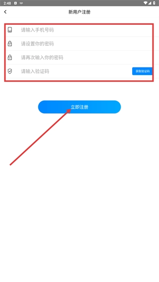 3、要是没有账号,就点击【没有账号-立即注册】,在新打开的页面里填好【号-密码-验证码】,然后点击【立即注册】。