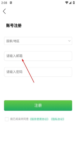 4、进入账号注册页面后,点击“请输入邮箱”的输入框,准备填写邮箱信息来完成注册。