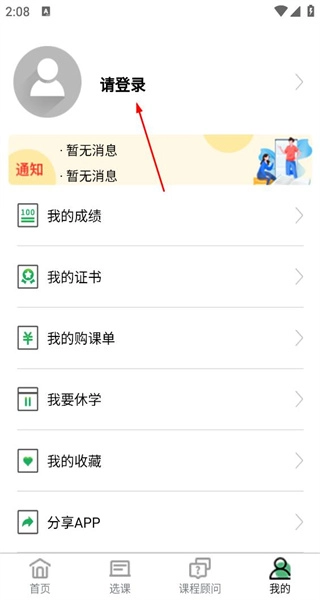 1、打开软件首页,能看到课程推荐之类的内容,点击底部的“我的”选项,就能进入个人中心页面。