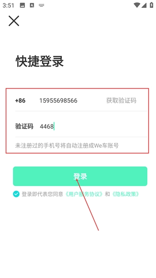 3、进入【快捷登录】界面后,填写对应的号码,点击“获取验证码”按钮并输入收到的验证码即可完成登录;若该号码尚未注册,系统将自动完成注册流程。
