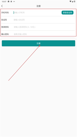 3、进入注册页面后,先填写【号码】,接着点击【获取验证码】,输入收到的验证码,然后设置并确认登录密码,最后点击【注册】按钮,即可完成账号创建。