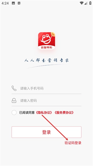 1、在数智导购的登录界面,选择【验证码登录】选项,切换到验证码登录的操作页面后,就能通过短信验证来完成登录。