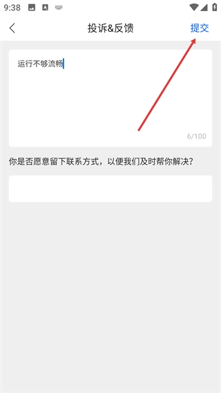 4、确认“运行不够流畅”这类反馈内容填写完毕后,点击右上角的【提交】按钮,即可完成反馈操作。